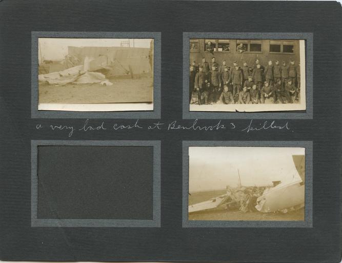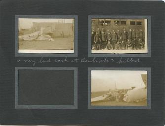 Keywords: 1910s world war i worldwari royal flying corps royalflyingcorps royal air force royalairforce trains crashes aircraft "a very bad crash at Benbrook [Texas] 3 killed" photos of crashes and a photo of men standing in front of a railway car. Photographs taken by Harry McBride (1893-1969), who worked as a rigger in the Royal Flying Corps and Royal Air Force during the First World War. He was stationed at Camp Mohawk near Deseronto, Ontario, and also at Camp Taliaferro near Fort Worth, Texas. Scanned images donated to the Archives by Dan McBride, Harry's grandson. "a very bad crash at Benbrook [Texas] 3 killed" photos of crashes and a photo of men standing in front of a railway car. Photographs taken by Harry McBride (1893-1969), who worked as a rigger in the Royal Flying Corps and Royal Air Force during the First World War. He was stationed at Camp Mohawk near Deseronto, Ontario, and also at Camp Taliaferro near Fort Worth, Texas. Scanned images donated to the Archives by Dan McBride, Harry's grandson. |