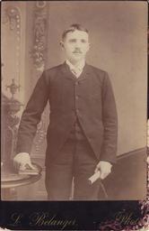 Keywords: portraits men clothes 1880s Photographic portrait of James Gaulin, taken by L. Belanger, photographer. Possibly a graduation photograph. Gaulin was the postmaster in Deseronto in the first 20 years of the twentieth century. He was born on May 1st, 1870 and died in his residence on the corner of St. George Street and Thomas Street on June 2nd, 1920. Loaned for scanning by Gaulin's grand-daughter, Marie McCartney in August 2015. Photographic portrait of James Gaulin, taken by L. Belanger, photographer. Possibly a graduation photograph. Gaulin was the postmaster in Deseronto in the first 20 years of the twentieth century. He was born on May 1st, 1870 and died in his residence on the corner of St. George Street and Thomas Street on June 2nd, 1920. Loaned for scanning by Gaulin's grand-daughter, Marie McCartney in August 2015. |