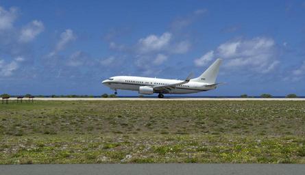 Keywords: usaf u.s. air force usairforce pacaf pacom wake island wakeisland jber joint base elmendorf-richardson jointbaseelmendorfrichardson prsc 611th asus 611thasus world war ii worldwarii wwii 75th anniversary 75thanniversary battle of wake island battleofwakeisland outdoor airplane aircraft vehicle A U.S. Navy C-40 Clipper logistics aircraft lands at Wake Island Airfield June 3. The C-40A Clipper is a military version of the Boeing 737-700C; this particular aircraft serves as a "rotator" ferrying military personnel and their families between Pacific duty stations and the mainland U.S. Wake Island, "Where America's Day Really Begins," is an American possession in the middle Pacific within the Micronesia subregion, 2300 miles west of Hawaii and 2000 miles southeast of Tokyo. The coral atoll comprises three islands and roughly 2.8 square miles of dry land. In recognition of its importance during WWII in the Pacific and to thousands of species of sea birds, fish, and other oceanic flaura and fauna today, Wake Island is designated as both a National Historic Landmark and part of the Pacific Remote Islands Marine National Monument. A U.S. Navy C-40 Clipper logistics aircraft lands at Wake Island Airfield June 3. The C-40A Clipper is a military version of the Boeing 737-700C; this particular aircraft serves as a "rotator" ferrying military personnel and their families between Pacific duty stations and the mainland U.S. Wake Island, "Where America's Day Really Begins," is an American possession in the middle Pacific within the Micronesia subregion, 2300 miles west of Hawaii and 2000 miles southeast of Tokyo. The coral atoll comprises three islands and roughly 2.8 square miles of dry land. In recognition of its importance during WWII in the Pacific and to thousands of species of sea birds, fish, and other oceanic flaura and fauna today, Wake Island is designated as both a National Historic Landmark and part of the Pacific Remote Islands Marine National Monument.