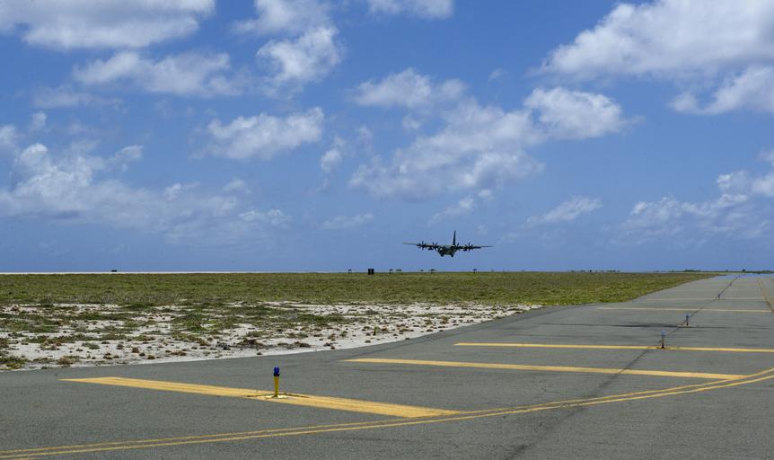 Keywords: usaf u.s. air force usairforce pacaf pacom wake island wakeisland jber joint base elmendorf-richardson jointbaseelmendorfrichardson prsc 611th asus 611thasus world war ii worldwarii wwii 75th anniversary 75thanniversary battle of wake island battleofwakeisland outdoor A Republic of Korea Air Force C-130J Super Hercules lands at Wake Island Airfield June 3. Two ROKAF C-130s carried 100 ROKAF Academy cadets across the Pacific. Wake Island, "Where America's Day Really Begins," is an American possession in the middle Pacific within the Micronesia subregion, 2300 miles west of Hawaii and 2000 miles southeast of Tokyo. The coral atoll comprises three islands and roughly 2.8 square miles of dry land. In recognition of its importance during WWII in the Pacific and to thousands of species of sea birds, fish, and other oceanic flaura and fauna today, Wake Island is designated as both a National Historic Landmark and part of the Pacific Remote Islands Marine National Monument. A Republic of Korea Air Force C-130J Super Hercules lands at Wake Island Airfield June 3. Two ROKAF C-130s carried 100 ROKAF Academy cadets across the Pacific. Wake Island, "Where America's Day Really Begins," is an American possession in the middle Pacific within the Micronesia subregion, 2300 miles west of Hawaii and 2000 miles southeast of Tokyo. The coral atoll comprises three islands and roughly 2.8 square miles of dry land. In recognition of its importance during WWII in the Pacific and to thousands of species of sea birds, fish, and other oceanic flaura and fauna today, Wake Island is designated as both a National Historic Landmark and part of the Pacific Remote Islands Marine National Monument.