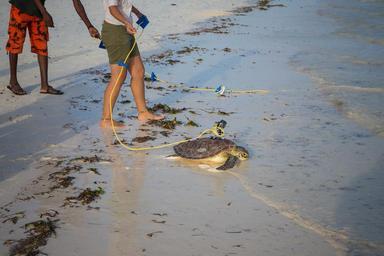 | Keywords: outdoor KENYA, Watamu: In a photograph taken by Make It Kenya 17 January 2016, a green sea turtle with a detachable GoPro camera mounted on it's carapace makes its way down a beach in Watamu and back into the Indian Ocean. In a world first, the event was streamed over the internet, broadcast on Twitter's Periscope application as the sea turtle entered the surf and swam back out into open water. Kenya's famous wildlife and beautiful tropical coastline was for two weeks being showcased in a series of live web broadcasts using state-of–the-art technology. #KenyaLive enabled people to witness the excitement of a night safari in the Mara in real time using specialist night-vision equipment as well as the release and first moments back in the wild of rehabilitated sea turtles which had accidentally been caught in fishing nets along the Watamu coast. The series of broadcasts highlighted the work of the LOT turtle conservation organisation, in addition to the many other and varied activities Watamu has to offer including stand-up paddle boarding with dolphins, snorkelling and scuba diving, all broadcast live by HerdTracker and Make It Kenya using the social media application Periscope. MAKE IT KENYA PHOTO / STUART PRICE. KENYA, Watamu: In a photograph taken by Make It Kenya 17 January 2016, a green sea turtle with a detachable GoPro camera mounted on it's carapace makes its way down a beach in Watamu and back into the Indian Ocean. In a world first, the event was streamed over the internet, broadcast on Twitter's Periscope application as the sea turtle entered the surf and swam back out into open water. Kenya's famous wildlife and beautiful tropical coastline was for two weeks being showcased in a series of live web broadcasts using state-of–the-art technology. #KenyaLive enabled people to witness the excitement of a night safari in the Mara in real time using specialist night-vision equipment as well as the release and first moments back in the wild of rehabilitated sea turtles which had accidentally been caught in fishing nets along the Watamu coast. The series of broadcasts highlighted the work of the LOT turtle conservation organisation, in addition to the many other and varied activities Watamu has to offer including stand-up paddle boarding with dolphins, snorkelling and scuba diving, all broadcast live by HerdTracker and Make It Kenya using the social media application Periscope. MAKE IT KENYA PHOTO / STUART PRICE. |