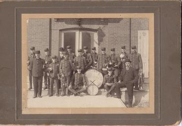 Keywords: 1910s men uniforms musicians musical instruments musicalinstruments Group portrait of a "Citizens' Band". On the reverse of the picture are the words "Owner, Mrs Clara French, Thomas St Deseronto Ont.". [Possibly the Napanee Citizens' Band.] Donated by Wilfred French, January 2016. Group portrait of a "Citizens' Band". On the reverse of the picture are the words "Owner, Mrs Clara French, Thomas St Deseronto Ont.". [Possibly the Napanee Citizens' Band.] Donated by Wilfred French, January 2016.