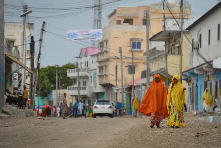 | Keywords: outdoor Two women dressed up for Eid el-Fitr walk through the streets in Mogadishu, Somalia, on July 6, 2016. AMISOM Photo / Tobin Jones Two women dressed up for Eid el-Fitr walk through the streets in Mogadishu, Somalia, on July 6, 2016. AMISOM Photo / Tobin Jones |