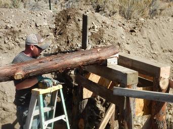 Keywords: history historic blmcalifornia california blmnevada nevada outdoors archaeology wildlife desert ranch preservation bureau of land management bureauoflandmanagement blmcareers outdoor careers outdoorcareers conservation past public lands publiclands heritage outdoor -Story and photo by Jen Rovanpera, Archaeologist for the BLM Applegate Field Office The BLM Applegate Field Office just completed stabilizing and preserving a 1930s root cellar on the historic Bitner Ranch located in Washoe County, Nevada. The root cellar was built in the 1930s to store food and other perishables. It consists of a large cavity (cellar) built into the side of a hill just east of the ranch house. Juniper poles were laid across the top of the cavity, the covered with hay from the nearby meadow. Dirt was then piled onto the roof into order to insulate it further. A small wooden structure with steps leads down into the cellar. Once inside, the maximum height of the cellar is about 6 feet. Shelving units were built along three of the walls. Little is known about the beginnings of Bitner Ranch. A structure in Badger Meadows appears on a survey map as early as 1873/1874; however the land was not patented from the state of Nevada until 1900. Based on the style of barbed wire, some of the older corrals and fences were probably built sometime between 1874 and 1892. The ranch hosts a ranch house, a black smith shop with a bunk house for workers, a milk barn, a root cellar, an outhouse, corrals, and a small animal pen. Most of the remaining structures on the property were built in the 1920s, except for the root cellar which was built in the 1930s and the milk barn which might be one of the oldest standing structures on the ranch. The Bureau of Land Management acquired the Bitner Ranch in 1995. Bitner Ranch is an excellent example of a high desert, homestead era ranch and one of the few remaining ranches to be managed by the Bureau of Land Management in northwestern Nevada. The goal is to preserve the historic ranch, continue research, and establish an interpretive center about the history and wildlife of the meadow. The preservation project included removing the dirt that had caved into the cellar through the collapsed roof, stabilizing the wooden structure, and rebuilding the steps into the cellar. The project was completed in two weeks by Jed Mauldin, Dane Mauldin, and Kody Smith of S.T. Rhoades Construction, Inc. Pictured here, the base of the wooden structure was completed rotted, so the structure was braced and then moved. The entryway was then re-built. -Story and photo by Jen Rovanpera, Archaeologist for the BLM Applegate Field Office The BLM Applegate Field Office just completed stabilizing and preserving a 1930s root cellar on the historic Bitner Ranch located in Washoe County, Nevada. The root cellar was built in the 1930s to store food and other perishables. It consists of a large cavity (cellar) built into the side of a hill just east of the ranch house. Juniper poles were laid across the top of the cavity, the covered with hay from the nearby meadow. Dirt was then piled onto the roof into order to insulate it further. A small wooden structure with steps leads down into the cellar. Once inside, the maximum height of the cellar is about 6 feet. Shelving units were built along three of the walls. Little is known about the beginnings of Bitner Ranch. A structure in Badger Meadows appears on a survey map as early as 1873/1874; however the land was not patented from the state of Nevada until 1900. Based on the style of barbed wire, some of the older corrals and fences were probably built sometime between 1874 and 1892. The ranch hosts a ranch house, a black smith shop with a bunk house for workers, a milk barn, a root cellar, an outhouse, corrals, and a small animal pen. Most of the remaining structures on the property were built in the 1920s, except for the root cellar which was built in the 1930s and the milk barn which might be one of the oldest standing structures on the ranch. The Bureau of Land Management acquired the Bitner Ranch in 1995. Bitner Ranch is an excellent example of a high desert, homestead era ranch and one of the few remaining ranches to be managed by the Bureau of Land Management in northwestern Nevada. The goal is to preserve the historic ranch, continue research, and establish an interpretive center about the history and wildlife of the meadow. The preservation project included removing the dirt that had caved into the cellar through the collapsed roof, stabilizing the wooden structure, and rebuilding the steps into the cellar. The project was completed in two weeks by Jed Mauldin, Dane Mauldin, and Kody Smith of S.T. Rhoades Construction, Inc. Pictured here, the base of the wooden structure was completed rotted, so the structure was braced and then moved. The entryway was then re-built.
