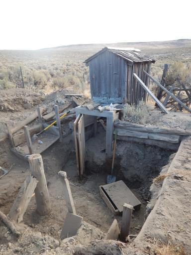 | Keywords: history historic blmcalifornia california blmnevada nevada outdoors archaeology wildlife desert ranch preservation bureau of land management bureauoflandmanagement blmcareers outdoor careers outdoorcareers conservation past public lands publiclands heritage outdoor -Story and photo by Jen Rovanpera, Archaeologist for the BLM Applegate Field Office The BLM Applegate Field Office just completed stabilizing and preserving a 1930s root cellar on the historic Bitner Ranch located in Washoe County, Nevada. The root cellar was built in the 1930s to store food and other perishables. It consists of a large cavity (cellar) built into the side of a hill just east of the ranch house. Juniper poles were laid across the top of the cavity, the covered with hay from the nearby meadow. Dirt was then piled onto the roof into order to insulate it further. A small wooden structure with steps leads down into the cellar. Once inside, the maximum height of the cellar is about 6 feet. Shelving units were built along three of the walls. Little is known about the beginnings of Bitner Ranch. A structure in Badger Meadows appears on a survey map as early as 1873/1874; however the land was not patented from the state of Nevada until 1900. Based on the style of barbed wire, some of the older corrals and fences were probably built sometime between 1874 and 1892. The ranch hosts a ranch house, a black smith shop with a bunk house for workers, a milk barn, a root cellar, an outhouse, corrals, and a small animal pen. Most of the remaining structures on the property were built in the 1920s, except for the root cellar which was built in the 1930s and the milk barn which might be one of the oldest standing structures on the ranch. The Bureau of Land Management acquired the Bitner Ranch in 1995. Bitner Ranch is an excellent example of a high desert, homestead era ranch and one of the few remaining ranches to be managed by the Bureau of Land Management in northwestern Nevada. The goal is to preserve the historic ranch, continue research, and establish an interpretive center about the history and wildlife of the meadow. The preservation project included removing the dirt that had caved into the cellar through the collapsed roof, stabilizing the wooden structure, and rebuilding the steps into the cellar. The project was completed in two weeks by Jed Mauldin, Dane Mauldin, and Kody Smith of S.T. Rhoades Construction, Inc. Pictured here, the project began by removing the old juniper poles of the roof and digging out the dirt filling the root cellar by hand. -Story and photo by Jen Rovanpera, Archaeologist for the BLM Applegate Field Office The BLM Applegate Field Office just completed stabilizing and preserving a 1930s root cellar on the historic Bitner Ranch located in Washoe County, Nevada. The root cellar was built in the 1930s to store food and other perishables. It consists of a large cavity (cellar) built into the side of a hill just east of the ranch house. Juniper poles were laid across the top of the cavity, the covered with hay from the nearby meadow. Dirt was then piled onto the roof into order to insulate it further. A small wooden structure with steps leads down into the cellar. Once inside, the maximum height of the cellar is about 6 feet. Shelving units were built along three of the walls. Little is known about the beginnings of Bitner Ranch. A structure in Badger Meadows appears on a survey map as early as 1873/1874; however the land was not patented from the state of Nevada until 1900. Based on the style of barbed wire, some of the older corrals and fences were probably built sometime between 1874 and 1892. The ranch hosts a ranch house, a black smith shop with a bunk house for workers, a milk barn, a root cellar, an outhouse, corrals, and a small animal pen. Most of the remaining structures on the property were built in the 1920s, except for the root cellar which was built in the 1930s and the milk barn which might be one of the oldest standing structures on the ranch. The Bureau of Land Management acquired the Bitner Ranch in 1995. Bitner Ranch is an excellent example of a high desert, homestead era ranch and one of the few remaining ranches to be managed by the Bureau of Land Management in northwestern Nevada. The goal is to preserve the historic ranch, continue research, and establish an interpretive center about the history and wildlife of the meadow. The preservation project included removing the dirt that had caved into the cellar through the collapsed roof, stabilizing the wooden structure, and rebuilding the steps into the cellar. The project was completed in two weeks by Jed Mauldin, Dane Mauldin, and Kody Smith of S.T. Rhoades Construction, Inc. Pictured here, the project began by removing the old juniper poles of the roof and digging out the dirt filling the root cellar by hand. |