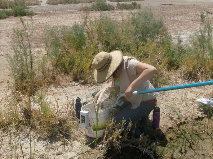 Keywords: wildlife nature public lands publiclands conservation restoration fish fisheries outdoors outdoor careers outdoorcareers blmcareers desert blmcalifornia california outdoor From the field! The Dos Palmas Area of Critical Environmental Concern (ACEC) in southern County of Riverside is a home to the desert pupfish (Cyprinodon macularius). This isolated population is a relic left behind in Salt Creek by the drying of ancient Lake Cahuilla and more recently the degradation of the Salton Sea. While a natural population persists in some reaches of Salt Creek, a series of ponds have been converted by the BLM to serve as desert pupfish refugia, supporting a large breeding population. Males become bright blue with yellow tails throughout the breeding season, while females and juveniles retain drab, patchy colors. The BLM coordinates with the California Department of Fish and Wildlife, the Bureau of Reclamation, and local water agencies to ensure that high quality pupfish habitat is sustained. Pupfish refugia prove their value time and time again as natural habitats dry up seasonally, due to drought, man-made water shortages, or unforeseen hydrological abnormalities. Summer months mean pupfish rescues, trapping survivors out of shrinking pools and transporting them in coolers to safer, more secure habitat. Photo by Joel Miner, BLM. From the field! The Dos Palmas Area of Critical Environmental Concern (ACEC) in southern County of Riverside is a home to the desert pupfish (Cyprinodon macularius). This isolated population is a relic left behind in Salt Creek by the drying of ancient Lake Cahuilla and more recently the degradation of the Salton Sea. While a natural population persists in some reaches of Salt Creek, a series of ponds have been converted by the BLM to serve as desert pupfish refugia, supporting a large breeding population. Males become bright blue with yellow tails throughout the breeding season, while females and juveniles retain drab, patchy colors. The BLM coordinates with the California Department of Fish and Wildlife, the Bureau of Reclamation, and local water agencies to ensure that high quality pupfish habitat is sustained. Pupfish refugia prove their value time and time again as natural habitats dry up seasonally, due to drought, man-made water shortages, or unforeseen hydrological abnormalities. Summer months mean pupfish rescues, trapping survivors out of shrinking pools and transporting them in coolers to safer, more secure habitat. Photo by Joel Miner, BLM.