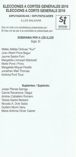| Keywords: 2016 Spanish General Elections Ballot - Illes Balears - Sobirania per a les Illes (SI).png es Papeleta electoral de Sobirania per a les Illes SI para el Congreso - Elecciones Generales de España de 2016 circunscripción de Illes Balears 2016-06-26 own JulianVillodre other versions cc-zero PD-SpanishGov <br/> De minimis The party logo Ballot papers for the 2016 general election for the Balearic Islands Ballot papers for the 2016 Spain general election supported by Wikimedia España All medias supported by Wikimedia España in 2016 Uploaded via Campaign bpsge |