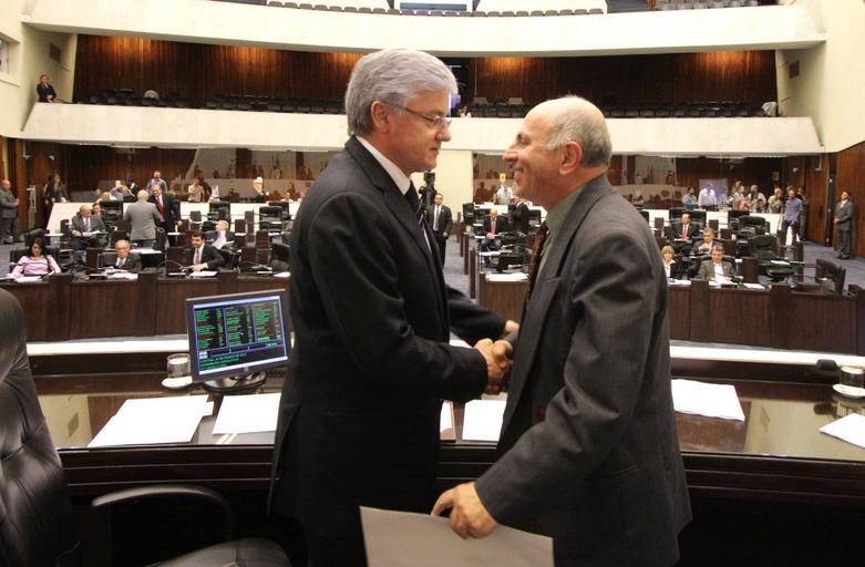 Keywords: Presidente da Assembleia Legislativa, deputado Valdir Rossoni (PSDB), cumprimenta o procurador de Justiça, Gilberto Giacoia, recentemente indiado pelo governador Beto Richa para ser o novo procurador-geral de Justiça, chefiando o Ministério Público do Paraná. Foto: Nani Gois/Alep (crédito obrigatório) poderlegislativo valdirrossoni gilbertogiacoia |