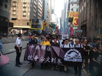 Keywords: 香港各界發起反人大釋法大遊行和集會 20.jpg zh-tw 中 人大常委 11 7日將就香港 年新政兩位議員宣誓風波,對基 法 宣誓 例宣布釋法內容之際,香港民間人權陣線星 天發起各界 反對釋法大遊行 和集 ,抗議人大 香港高等法院審理 宣誓風波司法覆核案 間,主動對基 法第104 釋法,破壞香港獨立的司法制度 香港民陣發起反釋法大遊行後,數以千計的示威 繼續遊行到西環的中聯辦抗議人大釋法 8點半左右,示威 手舉雨傘再次沖擊警方防線,警方則狂噴辣椒噴劑還擊 警方調派大批警員增援,並將配備防暴頭盔的警員派至 線與示威 對峙 警方不斷呼籲示威 持冷 ,不要 擊警方防線,要求示威 盡快離開 9點前, 中聯辦外與警察對峙的示威 突然撤離,輕 西 警署外的徳輔道西和西邊街道口,現場雙向交 中斷, 場自2014年雨傘運動後的佔領行動 醞 中,現場至少 幾千之 十多分鐘後,警方開始廣 播,要求佔路人士離開 示威 9點過後佔據了中聯辦外 段德輔道,並 中聯辦後 外與警方防線展開推撞,警方用辣椒噴 還擊將示威 防線推後 示威 不斷呼喊反對釋法 警方 中聯辦西邊的 光街路口佈署第二道防線,並 警員從路旁的西 警署裡向警察傳遞防暴盾牌 步部署防線 目前還不清楚警方何時清場 2016-11-06 15 40 33 http //www voachinese com/a/hk-protest-20161106/3583208 html 海彥 other versions Custom license marker 2016 11 06 PD-USGov-VOA Oppose the interpretation of Basic Law protest |