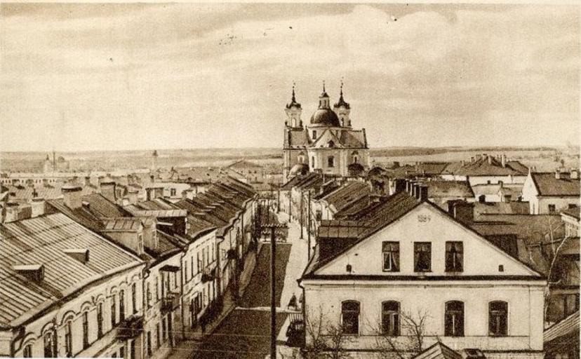 Keywords: Маркса20.jpg Забудова гіста ычнага цэнт а Г одна Вуліца К А кса былая Купецкая Фота пач 20ст Karl Marx Street in Hrodna PD-old-70-1923