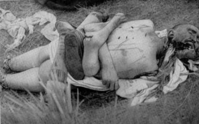 Keywords: 20 Août 1955 EL HALIA.jpg en Photo extracted from a propaganda document published in 1957 by the Gouvernement général de l'Algérie Aspects véritables de la rébellion algérienne fr Photo extraite d'un document de propagande publié en 1957 par le Gouvernement général de l'Algérie Aspects véritables de la rébellion algérienne 2012-04-06 http //nikkita n i pic centerblog net/7yjdhz5s jpg author PD-Algeria Harkis Decapitation Algerian War |