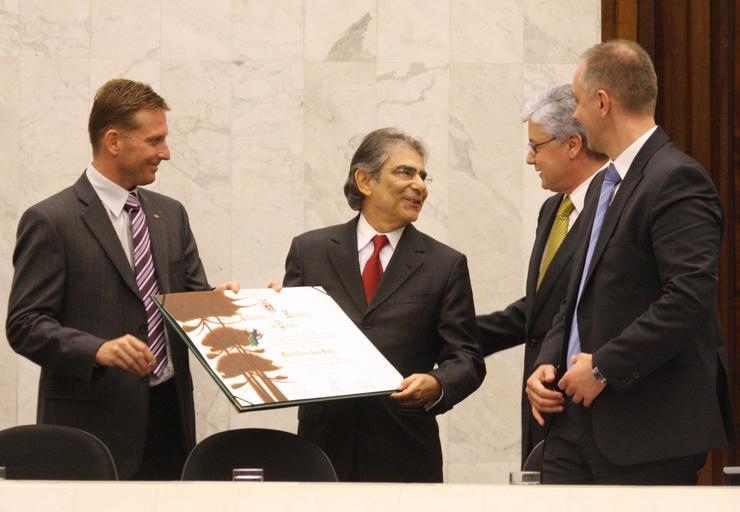 Keywords: cidadão honorário cidadãohonorário ayres britto ayresbritto indoor Em solenidade realizada nesta segunda-feira (21), às 18h30, a Assembleia Legislativa entregou o título de Cidadão Honorário do Paraná ao ministro Carlos Augusto Ayres de Freitas Britto, vice-presidente do Supremo Tribunal Federal (STF). O evento aconteceu no Plenário, por iniciativa do deputado Fábio Camargo (PTB). Ao justificar a homenagem, seu autor lembrou que Ayres Britto presidiu o Tribunal Superior Eleitoral (TSE) no período 2008/2010 e atuou para democratizar as eleições municipais ao viabilizar a contratação de servidores concursados para administrar o pleito, em lugar dos indicados dos prefeitos. Leia mais: www.alep.pr.gov.br/imprensa/noticias/noticia/20684/assemb... Foto: Nani Gois/Alep (crédito obrigatório) Em solenidade realizada nesta segunda-feira (21), às 18h30, a Assembleia Legislativa entregou o título de Cidadão Honorário do Paraná ao ministro Carlos Augusto Ayres de Freitas Britto, vice-presidente do Supremo Tribunal Federal (STF). O evento aconteceu no Plenário, por iniciativa do deputado Fábio Camargo (PTB). Ao justificar a homenagem, seu autor lembrou que Ayres Britto presidiu o Tribunal Superior Eleitoral (TSE) no período 2008/2010 e atuou para democratizar as eleições municipais ao viabilizar a contratação de servidores concursados para administrar o pleito, em lugar dos indicados dos prefeitos. Leia mais: www.alep.pr.gov.br/imprensa/noticias/noticia/20684/assemb... Foto: Nani Gois/Alep (crédito obrigatório) |