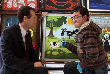 Keywords: assembleia legislativa assembleialegislativa apae professor lemos professorlemos exposição nova aurora novaaurora Aluno da APAE de Nova Aurora (PT), Elton Vieira Boaretto, mostra orgulhoso o quadro criado por ele ao deputado Professor Lemos (PT). Os alunos da APAE de Nova Aurora (PR) expõem trabalhos artísticos na Assembleia Legislativa do Paraná. A exposição dos quadros, proposta pelo deputado Professor Lemos (PT), segue até dia 25/08 no hall de entrada do prédio administrativo da Assembleia. Os trabalhos foram executados pelos alunos da instituição com auxílio dos professores. Participaram do lançamento o deputado Rasca Rodrigues (PV), o presidente da Federação das Apaes do Paraná (FEAPAES-PR), José Turozi, alunos e professores das Apaes de Curitiba e Colombo, e convidados. Saiba mais: www.alep.pr.gov.br Foto: Nani Gois/Alep (crédito obrigatório) Aluno da APAE de Nova Aurora (PT), Elton Vieira Boaretto, mostra orgulhoso o quadro criado por ele ao deputado Professor Lemos (PT). Os alunos da APAE de Nova Aurora (PR) expõem trabalhos artísticos na Assembleia Legislativa do Paraná. A exposição dos quadros, proposta pelo deputado Professor Lemos (PT), segue até dia 25/08 no hall de entrada do prédio administrativo da Assembleia. Os trabalhos foram executados pelos alunos da instituição com auxílio dos professores. Participaram do lançamento o deputado Rasca Rodrigues (PV), o presidente da Federação das Apaes do Paraná (FEAPAES-PR), José Turozi, alunos e professores das Apaes de Curitiba e Colombo, e convidados. Saiba mais: www.alep.pr.gov.br Foto: Nani Gois/Alep (crédito obrigatório) |