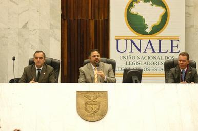 Keywords: unale assembleia legislativa do paraná assembleialegislativadoparaná artagão jr artagãojr groupshot people indoor O presidente em exercício da Assembleia Legislativa do Paraná e vice-presidente da União Nacional dos Legisladores e Legislativos Estaduais (Unale), deputado Artagão de Mattos Leão Jr. (PMDB), foi o anfitrião da reunião ordinária da Unale, na manhã desta segunda-feira (22), no Plenário da Casa. Entre outros temas, os parlamentares discutiram a revisão do pacto federativo, um tema polêmico na opinião de Mattos Leão Jr., para quem o Poder Legislativo foi “perdendo espaço” nos últimos anos. Participaram da reunião deputados de vários estados brasileiro. Leia mais: igre.me/5xuyb Foto: Sandro Nascimento/Alep (crédito obrigatório). O presidente em exercício da Assembleia Legislativa do Paraná e vice-presidente da União Nacional dos Legisladores e Legislativos Estaduais (Unale), deputado Artagão de Mattos Leão Jr. (PMDB), foi o anfitrião da reunião ordinária da Unale, na manhã desta segunda-feira (22), no Plenário da Casa. Entre outros temas, os parlamentares discutiram a revisão do pacto federativo, um tema polêmico na opinião de Mattos Leão Jr., para quem o Poder Legislativo foi “perdendo espaço” nos últimos anos. Participaram da reunião deputados de vários estados brasileiro. Leia mais: igre.me/5xuyb Foto: Sandro Nascimento/Alep (crédito obrigatório). |