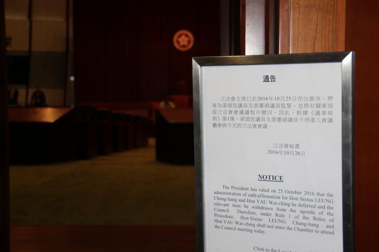 Keywords: 香港本土議員宣誓風波上演政治對決大戲 22.jpg zh-tw 香港立法 10 26日上演驚人政治大戲(美 之音海彥拍 ) 親中建制派上 三製 立法 流 阻止 年新政梁頌恆和遊蕙禎再次宣誓,並政治施壓 迫立法 主席梁君彥改變自己先前裁定,宣布押後兩人宣誓後,10 26日的立法 大 成為外界 注的焦點 同聲譴責梁君彥讓政治凌駕法律的 建制派議員, 三上午組成人鏈,成功護 梁頌恆和遊蕙禎 入議事大廳要求宣誓,但 終梁君彥以無法恢復 議廳秩序為由宣布休 ,再次阻止兩人宣誓 2016-10-26 10 53 38 http //www voachinese com/a/localist-legislators-fail-to-swear-20161026/3566630 html 海彥 other versions Custom license marker 2016 11 06 PD-USGov-VOA Hong Kong LegCo members' oath-taking controversy |