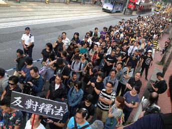 Keywords: 香港各界發起反人大釋法大遊行和集會 24.jpg zh-tw 中 人大常委 11 7日將就香港 年新政兩位議員宣誓風波,對基 法 宣誓 例宣布釋法內容之際,香港民間人權陣線星 天發起各界 反對釋法大遊行 和集 ,抗議人大 香港高等法院審理 宣誓風波司法覆核案 間,主動對基 法第104 釋法,破壞香港獨立的司法制度 香港民陣發起反釋法大遊行後,數以千計的示威 繼續遊行到西環的中聯辦抗議人大釋法 8點半左右,示威 手舉雨傘再次沖擊警方防線,警方則狂噴辣椒噴劑還擊 警方調派大批警員增援,並將配備防暴頭盔的警員派至 線與示威 對峙 警方不斷呼籲示威 持冷 ,不要 擊警方防線,要求示威 盡快離開 9點前, 中聯辦外與警察對峙的示威 突然撤離,輕 西 警署外的徳輔道西和西邊街道口,現場雙向交 中斷, 場自2014年雨傘運動後的佔領行動 醞 中,現場至少 幾千之 十多分鐘後,警方開始廣 播,要求佔路人士離開 示威 9點過後佔據了中聯辦外 段德輔道,並 中聯辦後 外與警方防線展開推撞,警方用辣椒噴 還擊將示威 防線推後 示威 不斷呼喊反對釋法 警方 中聯辦西邊的 光街路口佈署第二道防線,並 警員從路旁的西 警署裡向警察傳遞防暴盾牌 步部署防線 目前還不清楚警方何時清場 2016-11-06 16 29 20 http //www voachinese com/a/hk-protest-20161106/3583208 html 海彥 other versions Custom license marker 2016 11 06 PD-USGov-VOA Oppose the interpretation of Basic Law protest |
