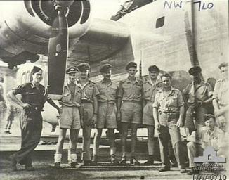 Keywords: 24 Squadron RAAF Liberator aircrew Fenton NT Jan 1945 AWM NWA0710.jpg AWM caption Fenton NT 27 January 1945 An informal group portrait of the air crew from No 24 Liberator Squadron RAAF which took part in an air raid on the power stations at Siman and Mendalan of the hydro-electric power system on the Konto River in Java Netherlands East Indies <br> Left to right Sergeant M W Lewis of Glenelg SA Flight Lieutenant Flt Lt G A Bond of Melbourne Vic Squadron Leader Sqn Ldr S J Nichol of Footscray Vic Flying Officer E T Jones of Brisbane Qld Flt Lt P Tanner of Launceston Tas Sqn Ldr R H Steele of Elwood Vic Warrant Officer J Holliday of Sydney NSW Group Captain D W Kingwell of Aberdeen NSW Captain Flight Sergeant R Hogan of Sydney NSW Kneeling Warrant Officer R L Baker of Moorooke SA NWA0710 1945-01-27 not stated Copyright expired - public domain PD-AustraliaGov No 24 Squadron RAAF World War II people of the Royal Australian Air Force World War II forces of Australia in Australia B-24 Liberator aircrew Consolidated Liberator RAAF Fenton Airfield Northern Territory ImageNote 1 54 118 28 40 418 329 2 Sergeant M W Lewis of Glenelg SA ImageNoteEnd 1 ImageNote 2 369 205 28 40 418 329 2 Warrant Officer R L Baker of Moorooke SA ImageNoteEnd 2 ImageNote 3 117 118 26 43 418 329 2 Flight Lieutenant Flt Lt G A Bond of Melbourne Vic ImageNoteEnd 3 ImageNote 4 142 114 25 39 418 329 2 Squadron Leader Sqn Ldr S J Nichol of Footscray Vic ImageNoteEnd 4 ImageNote 5 179 114 32 39 418 329 2 Flying Officer E T Jones of Brisbane Qld ImageNoteEnd 5 ImageNote 6 228 110 28 40 418 329 2 Flt Lt P Tanner of Launceston Tas ImageNoteEnd 6 ImageNote 7 267 116 28 37 418 329 2 Sqn Ldr R H Steele of Elwood Vic ImageNoteEnd 7 ImageNote 8 290 131 28 39 418 329 2 Warrant Officer J Holliday of Sydney NSW ImageNoteEnd 8 ImageNote 9 340 120 33 39 418 329 2 Group Captain D W Kingwell of Aberdeen NSW Captain ImageNoteEnd 9 ImageNote 10 396 113 21 36 418 329 2 Flight Sergeant R Hogan of Sydney NSW ImageNoteEnd 10 |