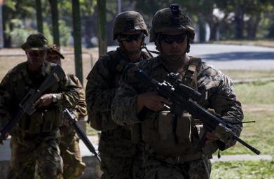 | Keywords: 2688375 PNGDF urban patrol US Marines.jpg en U S Marines with Task Force Koa Moana and the Papua New Guinea Defence Force run to their objective point for a simulated military operation urban terrain patrol during Exercise Koa Moana Taurama Barracks Papua New Guinea June 20 2016 Throughout the deployment the Marines and Sailors with the task force will share infantry law enforcement and engineering skills with host nations to strengthen relationships and interoperability in the Asia-Pacific region U S Marine Corps imagery by MCIPAC Combat Camera Lance Cpl Jesus McCloud/ Released 2016-06-19 20 00 00 https //www dvidshub net/image/2688375/koa-moana-162 U S Marine Corps Lance Cpl Jesus McCloud other versions PD-USGov Papua New Guinea Defence Force Relations of Papua New Guinea and the United States Invalid equipment in Exif |