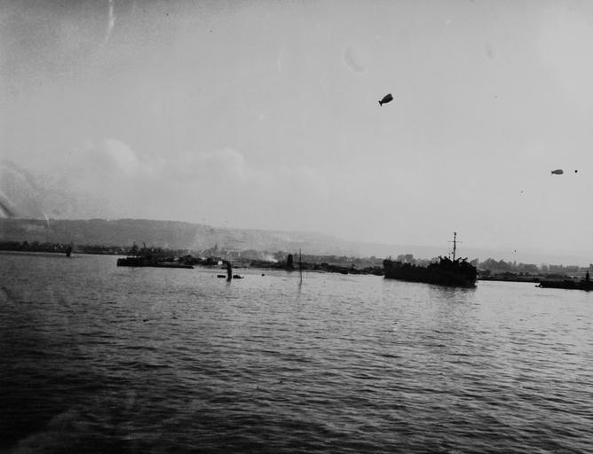 | Keywords: blackandwhite monochrome outdoor black and white 26-G-4385: Normandy Invasion, June 1944. Coast Guard-Manned LST Heads into French Coast. A section of the French shoreline is photographed from a Coast Guard-manned LST moving in the beach to make connection with a rail spur jutting to the water’s edge. When the union is completed, rail cars resting on the vessel’s track-equipped tank deck will roll ashore to start operation on the Army Transportation Corp’s vast network which supplies Allied armies on the Western Front. The Tank Landing Ship serves as a floating link between railroads in England and France, Jun 1944. (5/19/2015). 26-G-4385: Normandy Invasion, June 1944. Coast Guard-Manned LST Heads into French Coast. A section of the French shoreline is photographed from a Coast Guard-manned LST moving in the beach to make connection with a rail spur jutting to the water’s edge. When the union is completed, rail cars resting on the vessel’s track-equipped tank deck will roll ashore to start operation on the Army Transportation Corp’s vast network which supplies Allied armies on the Western Front. The Tank Landing Ship serves as a floating link between railroads in England and France, Jun 1944. (5/19/2015). |