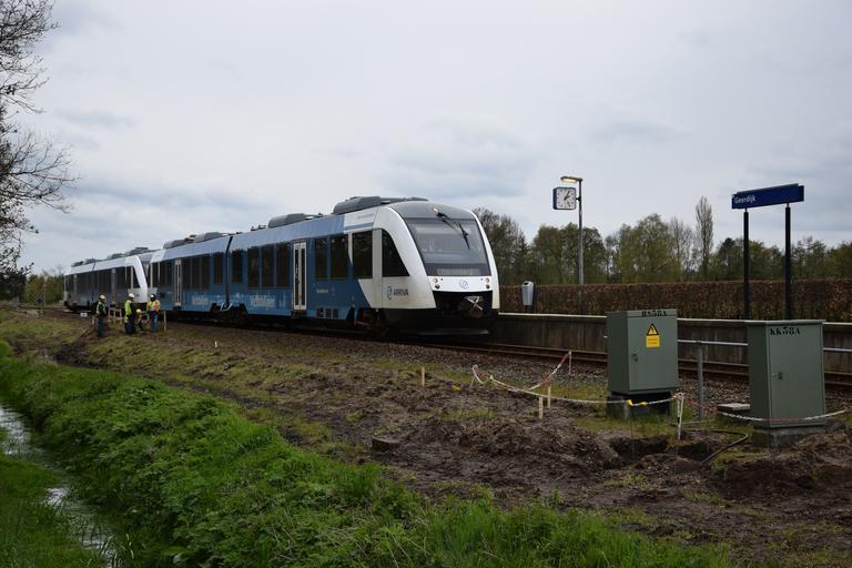 | Keywords: geerdijk station gare arriva lint lint41-h lint41h hardenberg almelo mariënberg almaha sluiting closure outdoor vehicle railroad train De 29ste april zal de boeken ingaan als de 'sterfdatum' van het pittoreske station Geerdijk. Bemind door treinliefhebbers vanwege zijn ligging in 'the middle of nowhere', maar veracht door Arriva door de lage reizigersaantallen. Arriva was al langer van plan om de treindienst door te trekken naar het dertig keer zo grote Hardenberg, maar de dienstregeling stond dit niet toe. Als men de treindienst wil doortrekken, heeft de trein namelijk net niet genoeg tijd om te keren. Het reizigerspotentieel van Hardenberg gaat echter station Geerdijk te boven, waardoor de knoop werd doorgehakt: sluiting van Geerdijk en tegelijkertijd verhoging van de baanvaksnelheid. Zaterdag 30 april vingen de werkzaamheden aan, en deze waren op 6 juni afgerond. Kortom, vrijdag 29 april zou Geerdijk dus voor het laatst bediend worden. Doordat treinreiziger.nl/OV Magazine de ludieke stunt bedachten om zo veel mogelijk reizigers te trekken op deze dag, had Arriva besloten om extra materieel in te zetten. Voor de spitsritten werd de diesel-GTW 374 uit de Achterhoek geleend, en voor de gewone slagen had men de 33 en 34 gekoppeld. Het is de eerste keer (en ook waarschijnljk de laatste keer) dat ze op deze lijn gekoppeld rijden: normaal biedt één LINT meer dan genoeg capaciteit in de daluren. Op deze foto komen de beide LINTs uit Mariënberg aanrijden, om na een korte stop de rit te vervolgen richting Vroomshoop, Daarlerveen, Vriezenveen en Almelo. Links in beeld zijn de werklui, die al staan te popelen om de boel hier te gaan vernieuwen. De 29ste april zal de boeken ingaan als de 'sterfdatum' van het pittoreske station Geerdijk. Bemind door treinliefhebbers vanwege zijn ligging in 'the middle of nowhere', maar veracht door Arriva door de lage reizigersaantallen. Arriva was al langer van plan om de treindienst door te trekken naar het dertig keer zo grote Hardenberg, maar de dienstregeling stond dit niet toe. Als men de treindienst wil doortrekken, heeft de trein namelijk net niet genoeg tijd om te keren. Het reizigerspotentieel van Hardenberg gaat echter station Geerdijk te boven, waardoor de knoop werd doorgehakt: sluiting van Geerdijk en tegelijkertijd verhoging van de baanvaksnelheid. Zaterdag 30 april vingen de werkzaamheden aan, en deze waren op 6 juni afgerond. Kortom, vrijdag 29 april zou Geerdijk dus voor het laatst bediend worden. Doordat treinreiziger.nl/OV Magazine de ludieke stunt bedachten om zo veel mogelijk reizigers te trekken op deze dag, had Arriva besloten om extra materieel in te zetten. Voor de spitsritten werd de diesel-GTW 374 uit de Achterhoek geleend, en voor de gewone slagen had men de 33 en 34 gekoppeld. Het is de eerste keer (en ook waarschijnljk de laatste keer) dat ze op deze lijn gekoppeld rijden: normaal biedt één LINT meer dan genoeg capaciteit in de daluren. Op deze foto komen de beide LINTs uit Mariënberg aanrijden, om na een korte stop de rit te vervolgen richting Vroomshoop, Daarlerveen, Vriezenveen en Almelo. Links in beeld zijn de werklui, die al staan te popelen om de boel hier te gaan vernieuwen. |