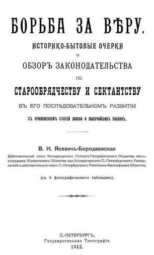 | Keywords: Ясевич-бородаевская2.jpg en Yasevich-Borodaevskaya V I page from book ru Титульная ст аница книги Бо ьба за ве у авто В И Ясевич-бо одаевская http //www bibliard ru/linkpics/001552 JPG Ясевич-бо одаевская В И 1912 год PD-old Scientists from Russia unidentified field 1861 births 1920 deaths Religion academics |