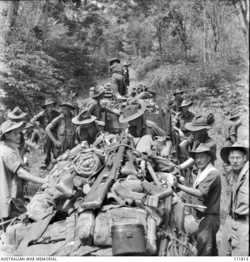 Keywords: 2-32ND INFANTRY BATTALION, UNLOADS RAILWAY TRUCKS TOWED BY A JEEP FITTED WITH SPECIAL WHEELS.JPG en BEAUFORT AREA BORNEO 5 JULY 1945 TROOPS OF B COMPANY 2/32ND INFANTRY BATTALION UNLOADING SUPPLIES BROUGHT BY RAILWAY TRUCKS TO THE AREA THE TRUCKS WERE TOWED BY A JEEP FITTED WITH SPECIAL WHEELS 1945-07-05 111813 author other versions Custom license marker 2015 08 12 PD-Australia Uploaded with UploadWizard Narrow gauge railways in Indonesia Borneo Images from the Australian War Memorial Military rail transport in World War II Rail Jeep |
