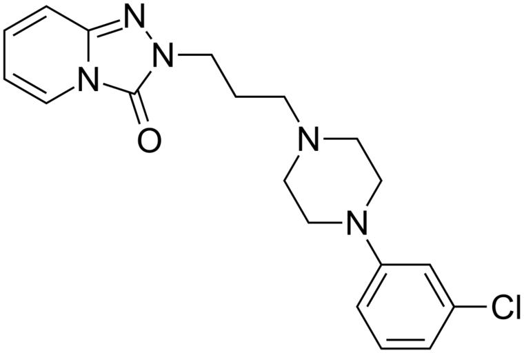Keywords: 2-(3-(4-(3-chlorophenyl)piperazin-1-yl)propyl)-(1,2,4)triazolo(4,3-a)pyridin-3(2H)-one 200.svg validSVG Structure of 2- 3-4- 3-chlorophenyl piperazin-1-ylpropyl -1 2 4triazolo4 3-apyridin-3 2H -one Struktur von 2- 3-4- 3-Chlorphenyl -1-piperazinylpropyl 1 2 4triazolo4 3-apyridin-3 2H -on Own 2014-03-13 Emeldir <span class signature-talk >talk</span> Chemical structure verified https //upload wikimedia org/wikipedia/commons/6/60/2- 283- 284- 283-chlorophenyl 29piperazin-1-yl 29propyl 29- 281 2C2 2C4 29triazolo 284 2C3-a 29pyridin-3 282H 29-one_200 svg 1S/C19H22ClN5O/c20-16-5-3-6-17 15-16 23-13-11-22 12-14-23 8-4-10-25-19 26 24-9-2-1-7-18 24 21-25/h1-3 5-7 9 15H 4 8 10-14H2 PHLBKPHSAVXXEF-UHFFFAOYSA-N 19794-93-5 PD-chem Trazodone |