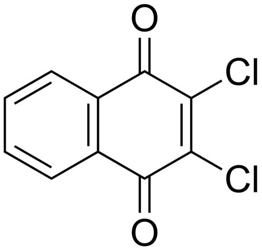 Keywords: 2,3-dichloronaphthalene-1,4-dione 200.svg validSVG Structure of 2 3-dichloronaphthalene-1 4-dione Struktur von 2 3-Dichlornaphthalin-1 4-dion Own 2014-03-24 Emeldir <span class signature-talk >talk</span> Chemical structure verified https //upload wikimedia org/wikipedia/commons/a/ab/2 2C3-dichloronaphthalene-1 2C4-dione_200 svg 1S/C10H4Cl2O2/c11-7-8 12 10 14 6-4-2-1-3-5 6 9 7 13/h1-4H SVPKNMBRVBMTLB-UHFFFAOYSA-N 117-80-6 204-210-5 PD-chem Naphthoquinones |