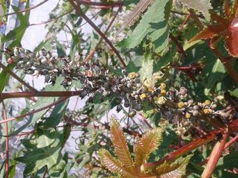Keywords: ஆமணக்கு2.jpg en Botanical name - Ricinus communis Common name - castor oil plant Tamil name AMANAKKU ஆமணக்கு Nativity India Traditionally seed is the source of castor oil;Researches have shown that with our plant as an ingredient among others valuable medicines full of Antiasthmatic activity Anti-Implantation activity Antitumour activity Antioxidant activity could be prepared; Some use castor oil as a contraceptive applying inside the vagina; Use of castor oil promotes hair growth and cures dandruff ; Root decoction is used in the treatment of lumbago and sciatica; ;Seeds are used in making jewelry ;Castor oil is massaged over breasts of women after childbirth to increase the milk flow ; Oil is effective to treat rheumatism Photo - Buds in Ricinus communis hi Gandharva hasta sa ERANDAH Own research Dr S Soundarapandian 2014-05-21 Own field work Shot in Chennai Tamilnadu India 4 5 kms off sea-shore ; Latitude-13°02'20 N ; Longitude- 80°13'43 E ; Elevation from sea level - 6 7 m Ricinus communis Cc-zero |