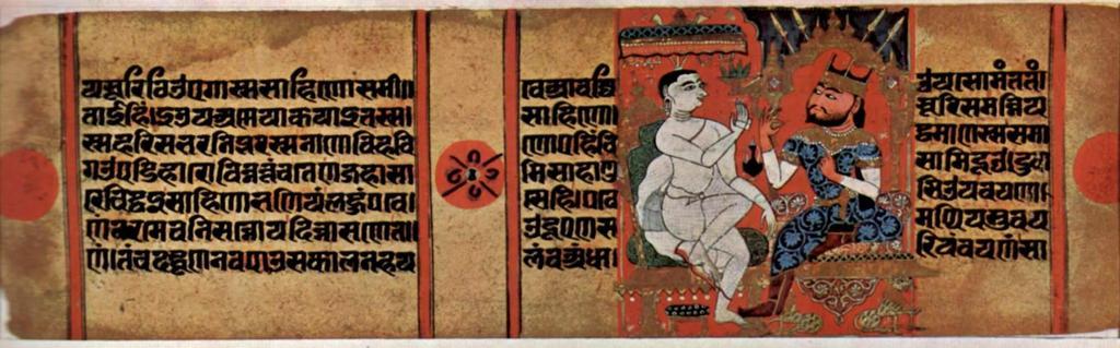 Keywords: 2 Kâlakâ and the Saka King. Page from Kalakacharyakatha, ca. 1411, Prince Wales Museum, Mumbai.jpg en 2 Kâlakâ and the Saka King Page from Kalakacharyakatha ca 1411 Prince Wales Museum Mumbai 2012-08-21 scan from book Creator Unknown PD-Art Uploaded with UploadWizard Jain paintings Palm-leaf manuscripts in India |