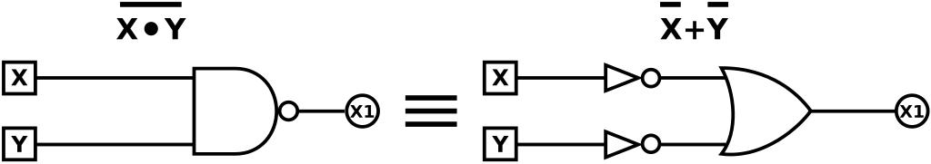 Keywords: 2. Theorem.svg en Logic circuit with NAND and OR gates pt Circuíto lógico com portas NAND e OR 2 Teorema png 12/05/2012 vectorization 2016-08-16 original Rafael Fonseca de Souza ; vectorization User Perhelion <gallery widths 120 heights 50 showfilename> 1 _Theorem svg </gallery> h + d Cc-zero De Morgan's law NAND gate symbols OR gate symbols |