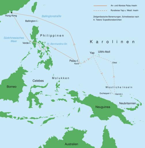 | Keywords: 2te Vesta-Expedition.png Karte zur zweiten Vesta-Expedition Alfred Tetens ™ Okt 1866 “Mrz 1867 zeitgenössische Benennungen Die Namen von Inselgruppen Atollen Inseln und Orten sind die im 19 Jahrhundert in Deutschland gebräuchlichen Die Schreibweise orientiert sich an Tetens' Expeditionsberichten PNG-Version zur Einbindung in Artikel Kartendaten Demis Map Server und Karte žÃ bersicht der Deutschen Besitzungen im Stillen Ozean ; Projektion unbekannt; Quelle Benennungen und Reisewege Alfred Tetens Expeditionen der Hamburger Brigg Vesta Die Berichte von Kapitän Alfred Tetens 1865 “1868 Transcript in modern German script by Jakob Anderhandt of Captain Tetens ™ reports of his expeditions to the Caroline Islands and Palau with annotations Transkript der Berichte von Alfred Tetens über seine Expeditionen zu den Karolinen und nach Palau 1865 “1868 in lateinischer Schrift angefertigt mit Anmerkungen versehen von Jakob Anderhandt Australian National University Pacific Manuscripts Bureau Canberra 2009 Mikrofilm PMB 1319; erstellt mit Adobe Illustrator CS 2 2013-07-24 Mr Südsee wikipedia de PDF-Version mit allen Bearbeitungsfunktionen Mr Südsee Original upload log de wikipedia NordNordWest CommonsHelper de wikipedia 2te+Vesta-Expedition png 2013-07-24 00 54 Mr Südsee 1772×1803× 270102 bytes <nowiki> Beschreibung Quelle Information Karte zur zweiten Vesta-Expedition Alfred Tetens ™ Okt 1866 “Mrz 1867 zeitgenössische Benennungen PNG-Version zur Einbindung in Artikel Kartendaten Demis Map Se ¦</nowiki> Tetens' Vesta expeditions |