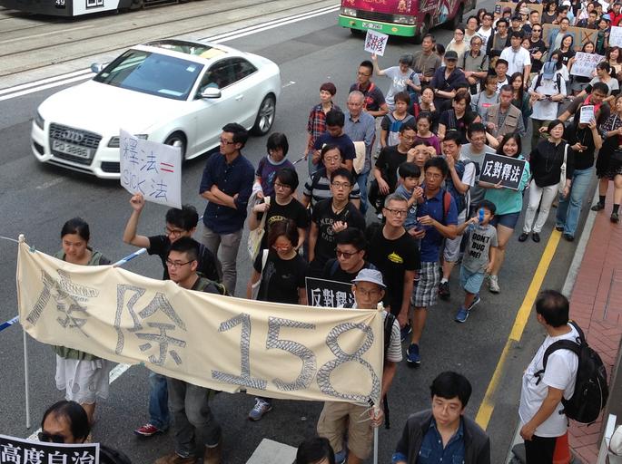 Keywords: 香港各界發起反人大釋法大遊行和集會 31.jpg zh-tw 中 人大常委 11 7日將就香港 年新政兩位議員宣誓風波,對基 法 宣誓 例宣布釋法內容之際,香港民間人權陣線星 天發起各界 反對釋法大遊行 和集 ,抗議人大 香港高等法院審理 宣誓風波司法覆核案 間,主動對基 法第104 釋法,破壞香港獨立的司法制度 香港民陣發起反釋法大遊行後,數以千計的示威 繼續遊行到西環的中聯辦抗議人大釋法 8點半左右,示威 手舉雨傘再次沖擊警方防線,警方則狂噴辣椒噴劑還擊 警方調派大批警員增援,並將配備防暴頭盔的警員派至 線與示威 對峙 警方不斷呼籲示威 持冷 ,不要 擊警方防線,要求示威 盡快離開 9點前, 中聯辦外與警察對峙的示威 突然撤離,輕 西 警署外的徳輔道西和西邊街道口,現場雙向交 中斷, 場自2014年雨傘運動後的佔領行動 醞 中,現場至少 幾千之 十多分鐘後,警方開始廣 播,要求佔路人士離開 示威 9點過後佔據了中聯辦外 段德輔道,並 中聯辦後 外與警方防線展開推撞,警方用辣椒噴 還擊將示威 防線推後 示威 不斷呼喊反對釋法 警方 中聯辦西邊的 光街路口佈署第二道防線,並 警員從路旁的西 警署裡向警察傳遞防暴盾牌 步部署防線 目前還不清楚警方何時清場 2016-11-06 16 16 38 http //www voachinese com/a/hk-protest-20161106/3583208 html 海彥 other versions Custom license marker 2016 11 06 PD-USGov-VOA Oppose the interpretation of Basic Law protest |