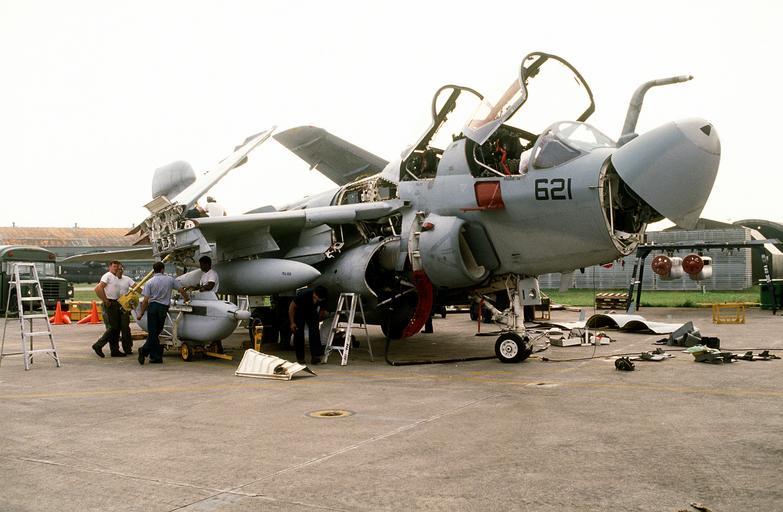 Keywords: df-st-98-00468 dfst9800468 aviano air base avianoairbase italy vehicle aircraft airplane outdoor 330-CFD-DF-ST-98-00468: US Navy aircraft maintenance personnel perform a 56 day preventive maintenance inspection on a US Navy EA-6B Prowler on the flight line. The aircraft is from Tactical Electronic Warfare Squadron 141 deployed on board the aircraft carrier USS Theodore Roosevelt (CVN-71). The Roosevelt is operating in the Adriatic Sea in support of the operation, 9/12/1995 TECH. SGT. Bruce Sherwood. (OPA-NARA II-8/17/2015). 330-CFD-DF-ST-98-00468: US Navy aircraft maintenance personnel perform a 56 day preventive maintenance inspection on a US Navy EA-6B Prowler on the flight line. The aircraft is from Tactical Electronic Warfare Squadron 141 deployed on board the aircraft carrier USS Theodore Roosevelt (CVN-71). The Roosevelt is operating in the Adriatic Sea in support of the operation, 9/12/1995 TECH. SGT. Bruce Sherwood. (OPA-NARA II-8/17/2015). |