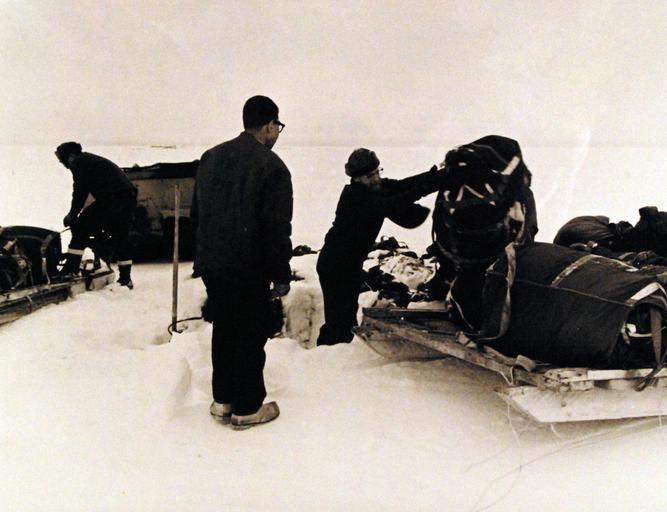 Keywords: 330-PSA-110-65 (USN 1111206C): Arlis II personnel load sleds with supplies as they prepare to evacuate the ice island which had been manned for four years during a 5,000 mile journey through the Arctic. Master Caption: The U.S. Navy icebreaker USS Edisto (AGB-2), which evacuated 19 men from the Navy’s Floating Arctic Research Ice Island in the Greenland Sea, May 8-9, 1965, arrived at Boston after her rescue. The Ice Island, about two miles long and one and one-half miles wide, had been manned since May 1961, when it was located about 130 miles north of Point Barrow, Alaska. The island was evacuated 200 miles northeast of Iceland after a 5,000 mile journey through Arctic waters. Arlis II traveled farther into the Greenland Sea than any other manned ice island. Scientists aboard conducted experiments in the fields of geophysics, marine biology, ice formation and oceanography. Photograph released May 19, 1965. (2015/11/10). 330-PSA-110-65 (USN 1111206C): Arlis II personnel load sleds with supplies as they prepare to evacuate the ice island which had been manned for four years during a 5,000 mile journey through the Arctic. Master Caption: The U.S. Navy icebreaker USS Edisto (AGB-2), which evacuated 19 men from the Navy’s Floating Arctic Research Ice Island in the Greenland Sea, May 8-9, 1965, arrived at Boston after her rescue. The Ice Island, about two miles long and one and one-half miles wide, had been manned since May 1961, when it was located about 130 miles north of Point Barrow, Alaska. The island was evacuated 200 miles northeast of Iceland after a 5,000 mile journey through Arctic waters. Arlis II traveled farther into the Greenland Sea than any other manned ice island. Scientists aboard conducted experiments in the fields of geophysics, marine biology, ice formation and oceanography. Photograph released May 19, 1965. (2015/11/10). |