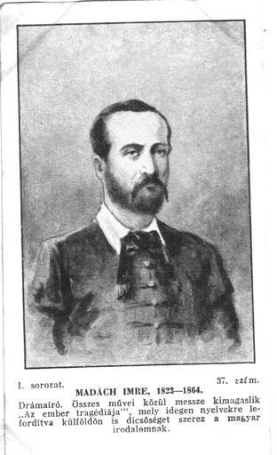 Keywords: 37. Madách Imre.jpg hu A felvétel szkennelés 2012 június 7 én készült A képeslapsorozat korábbi tulajdonosa Bálint János Ócsa volt Az I sor 1 sz 1 sorozat 100 szám jelzetű képeslapok a 101 jelzetű füst albumot töltötték meg A képeslap sorozat képeit az 1920 as években adták ki Az ismeretlen szerző halála óta több mint 70 év telt el A képeslapok hátoldalán ex libris A sorozat képei 1 sz Gróf Széchenyi István 1791 1860 2 sz Deák Ferenc 1803 1876 2 sz 3 sz 4 sz 5 sz 6 sz 7 sz Felsőbükki Nagy Pál 1777 1857 8 sz Báró Eötvös József 1813 1871 9 sz Kossuth Lajos 1802 1894 10 sz Petőfi Sándor 1823 1849 11 sz Liszt Ferenc 1811 1886 12 sz Batthányy Lajos gróf 1806 1849 13 sz II Lajos 1506 1526 14 sz Munkácsy Mihály 1844 1900 15 sz Tisza Kálmán gróf 1830 1902 16 sz Mátyás király 1440 1490 17 sz Arany János 1817 1882 18 sz Tisza István gróf 1865 1918 19 sz Kölcsey Ferenc 1790 1838 20 sz Szinyei Merse Pál 1845 1920 21 sz Jókai Mór 1825 1904 22 sz Mikszáth Kálmán 1849 1910 23 sz Vörösmarty Mihály 1800 1855 24 sz Fadrusz János 1858 1903 25 sz Árpád a Honalapító 26 sz Szent István 975 -1038 27 sz Szent László 1040 - 1095 28 sz Könyves Kálmán 1070 1116 29 sz II Endre 1205 1235 30 sz IV Béla 1206 1270 31 sz Nagy Lajos 32 sz Hunyadi János 33 sz II Rákóczi Ferenc 34 sz Vak Bottyán 35 sz III Károly 36 sz II József 37 sz Madách Imre 38 sz Katona József 39 sz Csokonai Vitéz Mihály 40 sz Lotz Károly 41 sz Pöltenberg Ernő 42 sz Török Ignác 43 sz 44 sz 45 sz 46 sz 47 sz Aulich Lajos 48 sz Damjanich János 49 sz Dessewffy Arisztid 50 sz Lázár Vilmos 51 sz Kiss Ernő 52 sz Schweidel József 53 sz Vécsey Károly 54 sz Táncsics Mihály 55 sz Tompa Mihály 56 sz Rottenbiller Lipót 57 sz Szent Gellért 58 sz Szent Imre 59 sz Kapisztrán János 60 sz Kinizsi Pál 61 sz Tomori Pál 62 sz Zrinyi Miklós 63 sz Gábor Áron 64 sz Bem József 65 sz Bocskay István 66 sz Bethlen Gábor 67 sz József nádor 68 sz Kisfaludy Károly 69 sz Berzsenyi Dániel 70 sz Fáy András 71 sz Semmelweis Ignác 72 sz Egressy Gábor 73 sz Erkel Ferenc 74 sz Szilágyi Dezső 75 sz báró Bánffy Dezső 76 sz Ujházi Ede 77 sz Baross Gábor 78 sz id Wekerle Sándor 79 sz Justh Gyula 80 sz Prohászka Ottokár 81 sz Reményi Ede 82 sz Vámbéry Ármin 83 sz Rákosi Jenő 84 sz Eötvös Károly 85 sz Benczur Gyula 86 sz Blaha Lujza 87 sz Jászai Mari 88 sz Gárdonyi Géza 89 sz Ady Endre 90 sz Gyóni Géza 91 sz Báthori Zsigmond 92 sz Pázmány Péter 93 sz Kisfaludy Sándor 94 sz Goldmark Károly 95 sz Ferenc József 96 sz Erzsébet 97 sz Hermann Ottó 98 sz Lechner Ödön 99 sz Pósa Lajos 100 sz Móra Ferenc 101 jelzet füst album A felvétel és az egész sorozat képei megjelentek Creative Commons alatt a Metapolisz DVD sorozatban 2012-06-07 saját tulajdon author Custom license marker 2012 06 07 PD-old Uploaded with UploadWizard Imre Madách |