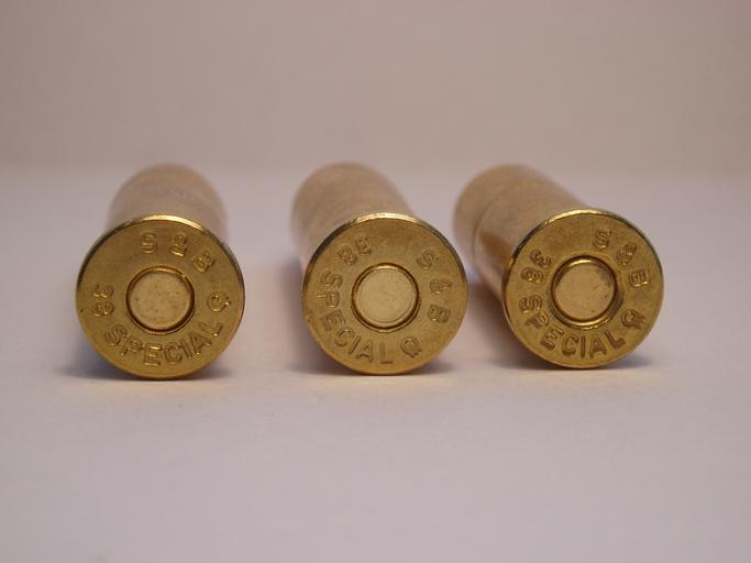 | Keywords: 38 Special - FMJ, SP, WC - SB - 3.jpg 38 Special revolver cartrdige From left to rightFMJ SP and wadcutter bullet Manufacturer Sellier Bellot own My own photo 2007-08-20 user Malis 38 Special Comparison of pistol and rifle cartridges Full metal jacket bullets Soft point bullets Wadcutter |