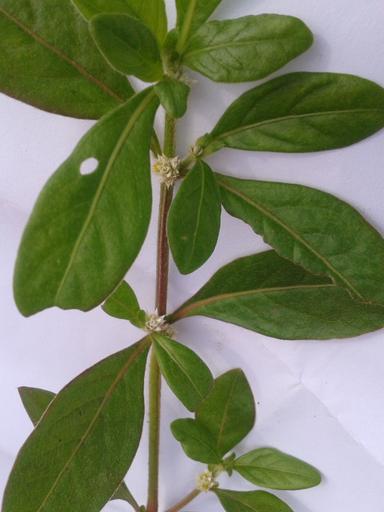 | Keywords: வெள்ளைப் பொன்னாங்கண்ணி 3.jpg en வெள்ளைப் பொன்னாங்கண்ணி Botanical name - Alternanthera sessilis White Common name - Sessile Joyweed Not so advocated as green variety ; Leaves are pot- herb;Gives strength to brain ; For blackening hair oil is made from this ; For piles complaint native physicians handle this pot-herb ; To treat dim eye sight this a native medicine Picture - Stem and leaves 0f Alternanthera sessilis வெள்ளைப் பொன்னாங்கண்ணி பச்சைப் பொன்னாங்கண்ணிக்கு உள்ள குணங்கள் எல்லாம் இதற்கு இருப்பதாகக் கூறுவதில்லை; இதன் தைலம் தலைமுடியைக் கறுப்பாக்கும்; தோலைப் பளபளப்பாக்கும் க ரை இது ; இக்க ரையை உண்டுவரின் கண் பார்வை நன்றாகும்; மூல நோய் ந க்கப் பரம்பரை மருத்துவர்கள் இக்க ரையை மருந்தாகக் கொடுக்கின்றனர் ;இக் க ரையால் கண் நோய்கள் சில குணமாகும ; வாய் நாற்றம் வாய்ப்புண்ணுக்கும் இக் க ரை மருந்து படம் - வெள்ளைப் பொன்னாங்கண்ணியின் தண்டும் இலைகளும் Sanskrit Matsyaksi ; Hindi Garundi Own research Dr S Soundarapandian 2014-05-23 Own field work Shot in Chennai Tamilnadu India 4 5 kms off sea-shore ; Latitude-13°02'20 N ; Longitude- 80°13'43 E ; Elevation from sea level - 6 7 m Alternanthera sessilis Cc-zero |
