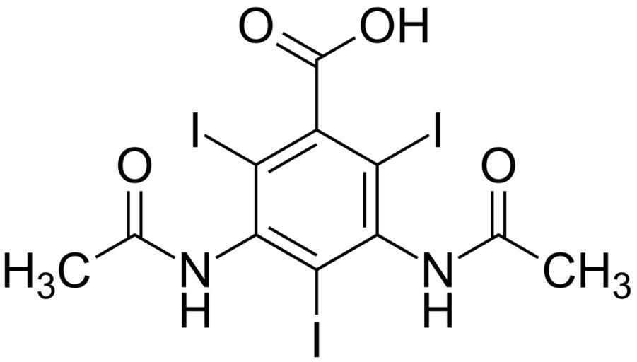| Keywords: 3,5-diacetamido-2,4,6-triiodobenzoic acid 200.svg validSVG Structure of 3 5-diacetamido-2 4 6-triiodobenzoic acid Own 2014-03-31 Emeldir <span class signature-talk >talk</span> Chemical structure verified https //upload wikimedia org/wikipedia/commons/d/d6/3 2C5-diacetamido-2 2C4 2C6-triiodobenzoic_acid_200 svg 1S/C11H9I3N2O4/c1-3 17 15-9-6 12 5 11 19 20 7 13 10 8 9 14 16-4 2 18/h1-2H3 H 15 17 H 16 18 H 19 20 YVPYQUNUQOZFHG-UHFFFAOYSA-N 117-96-4 PD-chem Triiodobenzenes Acetanilides Iodobenzoic acids |