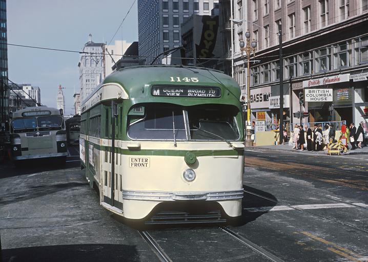 | Keywords: san francisco sanfrancisco Roger Puta took these on August 24, 1967 standing on the Market St. Streetcar Island near 2nd St. in San Francisco, CA. 1145 as a M OCEAN VIEW BROAD TO PLYMOUTH car. Roger Puta took these on August 24, 1967 standing on the Market St. Streetcar Island near 2nd St. in San Francisco, CA. 1145 as a M OCEAN VIEW BROAD TO PLYMOUTH car. |