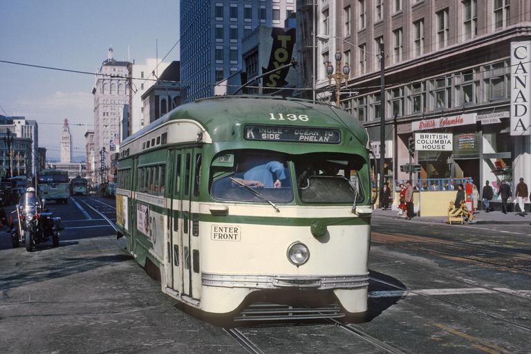 | Keywords: san francisco sanfrancisco Roger Puta took these on August 24, 1967 standing on the Market St. Streetcar Island near 2nd St. in San Francisco, CA. 1136 as a K INGLESIDE OCEAN TO PHELAN car. Roger Puta took these on August 24, 1967 standing on the Market St. Streetcar Island near 2nd St. in San Francisco, CA. 1136 as a K INGLESIDE OCEAN TO PHELAN car. |
