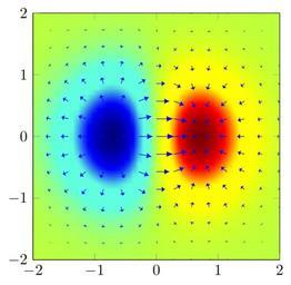 Keywords: 3d-gradient-colored.svg en Gradient of the function <math>f x y \frac x e x 2 + y 2 </math> is plotted as blue arrows over the pseudo color plot of the function itself de Der Gradient der Funktion <math>f x y \frac x e x 2 + y 2 </math> wurde als blaue Pfeile über der Funktion geplottet die als Farbschema codiert gezeichnet wurde Color-coded plot of a function with its gradient as blue arrows - Equation orange <math>f x y \frac x e x 2 + y 2 </math> - Coordinate System Cartesian - <math>x</math> Range -2 2 - <math>y</math> Range -2 2 - ValidSVG Source is available at https //github com/MartinThoma/LaTeX-examples/ github TikZ diagrams Images by Martin Thoma/Mathematics Mathematical analysis False-colors Cc-zero |