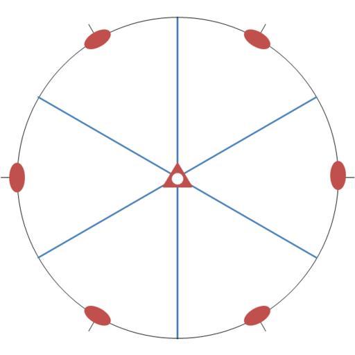 Keywords: -3m point group.png en Stereographic representation of the trigonal symmetry point group -3m in the hexagonal setting The 001 direction is perpendicular to the projection plane The mirror planes are represented in blue the rotation axes in red The thin black ticks show the direction of the equivalent crystallographic axes a1 a2 and a3 fr Représentation stéréographique du groupe ponctuel de symétrie trigonal -3m dans le référentiel hexagonal La direction 001 est perpendiculaire au plan de projection Les plans miroirs sont représentés en bleu les axes de rotation en rouge Les trait fins noirs montrent la direction des axes cristallographiques équivalents a1 a2 et a3 own Perditax 2011-06-06 Point groups Cc-zero |