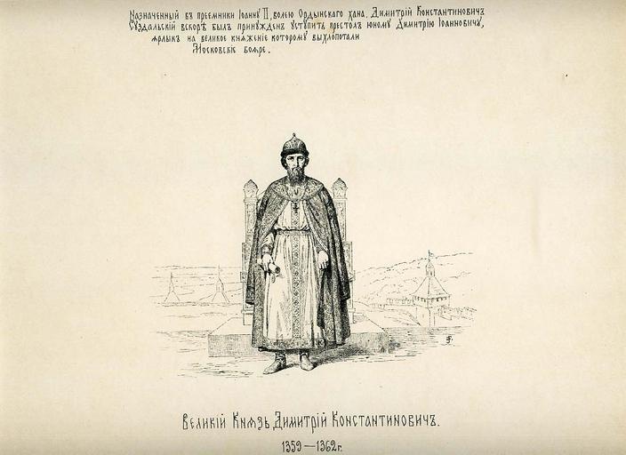 | Keywords: 41 History of the Russian state in the image of its sovereign rulers.jpg ru Великий Князь Димит ий Константинович 1359-1362 г <br> азначенный в п еемники Иоанну II волею О дыеского хана Димит ий Константинович Суздальский вско е был п инужден уступить п естол юному Димит ию Иоанновичу я лык на великое княжение кото ому выхлопотали осковские боя е full 41 History of the Russian state in the image of its sovereign rulers - fragment jpg Dmitriy Konstantinovich of Suzdal | ||||