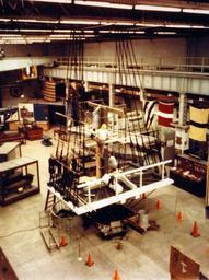 Keywords: 428-GX-K-122009: Washington Navy Yard, Washington, D.C. Naval Shipyard men from Boston Naval Shipyard and Navy Memorial Museum employees prepare the standard rigging and fixtures on the fighting top of the frigate USS Constitution which is being placed on exhibit in the museum. Photographed by PH1 Terry Mitchell, April 1978. U.S. Navy Photograph, now in the collections of the National Archives. (2016/02/02). Note, photographed from reference card 428-GX-K-122009: Washington Navy Yard, Washington, D.C. Naval Shipyard men from Boston Naval Shipyard and Navy Memorial Museum employees prepare the standard rigging and fixtures on the fighting top of the frigate USS Constitution which is being placed on exhibit in the museum. Photographed by PH1 Terry Mitchell, April 1978. U.S. Navy Photograph, now in the collections of the National Archives. (2016/02/02). Note, photographed from reference card |