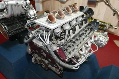 Keywords: 4983 cc Holden 5000 (special performance) V8 engine (2015-08-29) 01.jpg 4983 cc w Holden V8 engine Holden 5000 special performance V8 engine Photographed at the National Holden Motor Museum Echuca Victoria Australia <br /> ;Specifications Bore 101 6 mm in on Stroke 76 8 mm in on Compression 8 4 1 Power 180 kW hp on at 5200 rpm Torque 380 Nm lbft on at 4000 rpm ;Features Ram tuned inlet manifold with High volumetric efficiency in the upper speed range Inserted bell mouthed ram tubes Large volume plenum chamber Dual throttle bodies Primary 64 mm in on diameter Secondary large 80 mm in on diameter for unrestricted air flow Four-bolt main bearing caps Cylinder block internal stiffening ribs Low inertia flywheel Multi-point fuel injection High-rise increased flow inlet port Free-flow reduced length exhaust ports Centralised spark plug reduction Electronic ignition 2015-08-29 own OSX -36 12019 144 74528 OSX Photographs by OSX Holden V8 engine National Holden Motor Museum