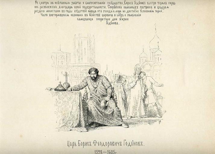 | Keywords: 49 History of the Russian state in the image of its sovereign rulers.jpg ru Ца ь Бо ис Феодо ович Годунов 1598-1605 г <br> е смот я на неустанные заботы о благосостоянии госуда ства Бо ис Годунов бст о те ял на одное асположение благода я своей подоз ительности Соо ужение каменных пост оек и щед ая аздача милостыни в годы бедствий на ода от голода и мо а не достигли успокоения че ни Част повто явшееся обвиенние в убийстве ца евича и слухи о появлении самозванца сок атили дни жизни Годунова full 49 History of the Russian state in the image of its sovereign rulers jpg Boris Godunov |