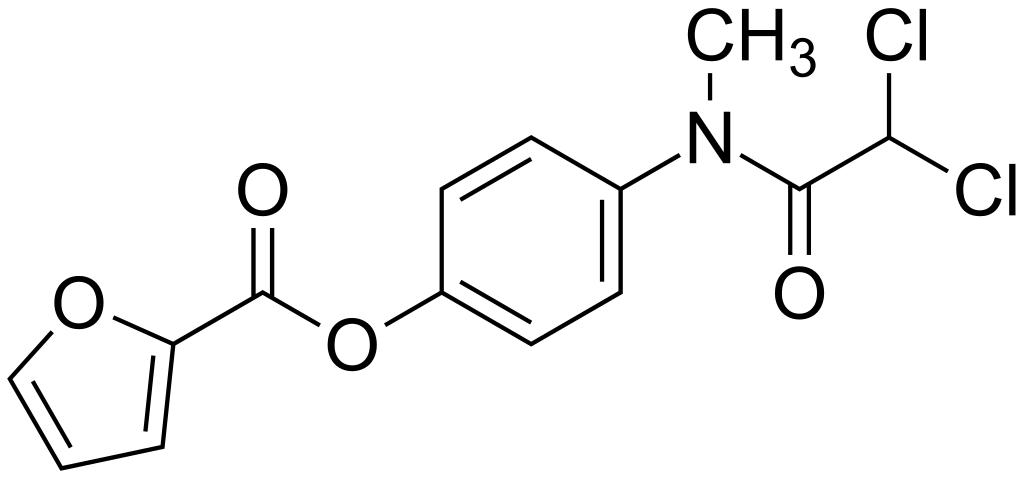 MAKE A MEME View Large Image 4-(2,2-dichloro-N-methylacetamido)phenyl furan-2-carboxylate 200.svg validSVG Structure of 4- 2 2-dichloro-N-methylacetamido phenyl furan-2-carboxylate Own 2014-03-31 Emeldir <span class signature-talk >talk</span> Chemical structure ...
