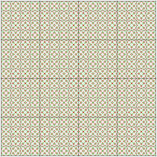 | Keywords: 4-ary Boolean functions; matrix wec E1 E3.svg Walsh equivalence classes E1 <small> red </small> and E3 <small> green </small> of 4-ary Boolean functions<br> The functions are represented as red squares in a 256×256 matrix organized like a 16-cube Hasse diagram This is also a sec matrix Its rows show 256 8-ary Boolean functions of weight 64 <small>Red and green fields are both seen as ones here </small> Inkscape-hand a -Boolean Bin2svg own 2012 Mate2code 4-ary Boolean functions; matrix wec Sec matrices of Boolean functions |