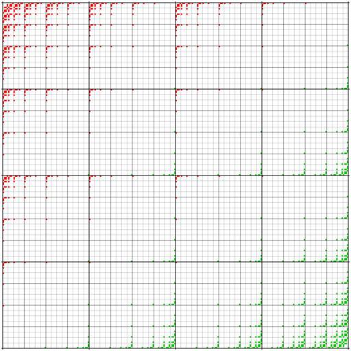 | Keywords: 4-ary Boolean functions; matrix weight 3, 13.svg 4-ary Boolean functions with Hamming weight 3 red and 13 green in a 256×256 matrix organized like a 16-cube Hasse diagram Inkscape-hand a -Boolean Bin2svg own 2012 Mate2code 4-ary Boolean functions; matrix weight |
